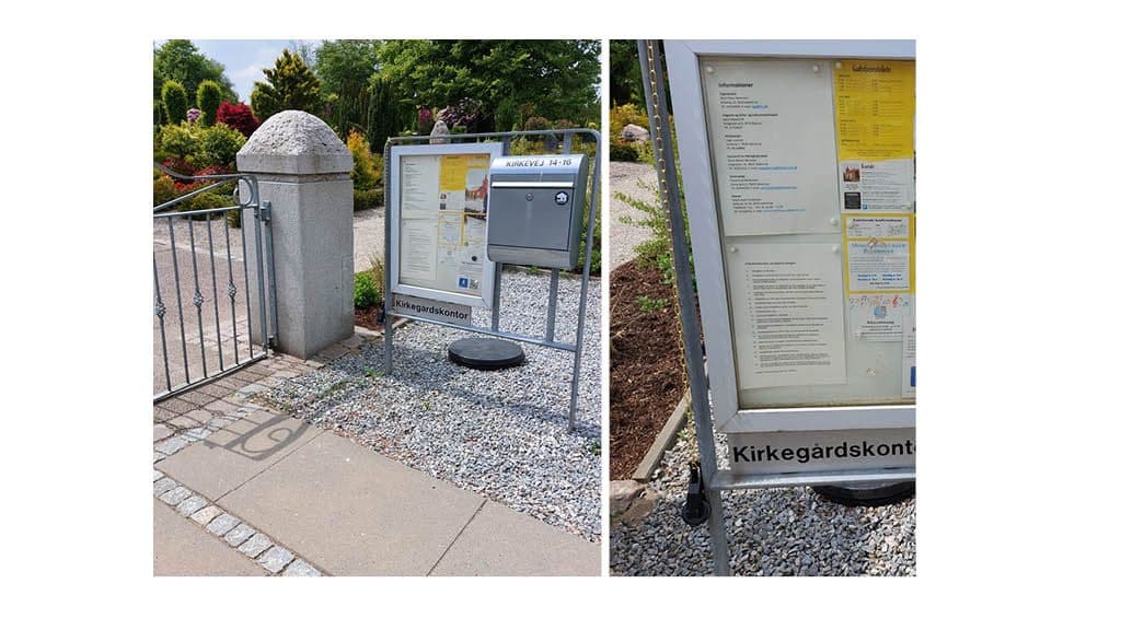 Find the stamp: The Hærvej stamp is hanging by the information board when you enter the cemetery.
