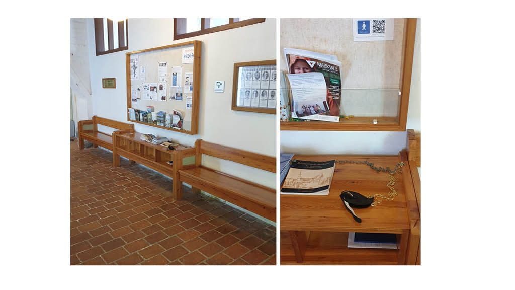 Find the stamp: The stamp is located in Dronninglund Church. It hangs in the large porch by the notice board.