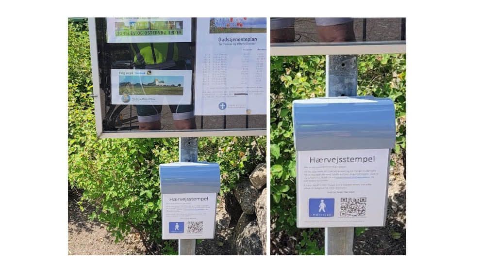 Find the stamp: The stamp can be found in a box by the information board at Torslev Church.